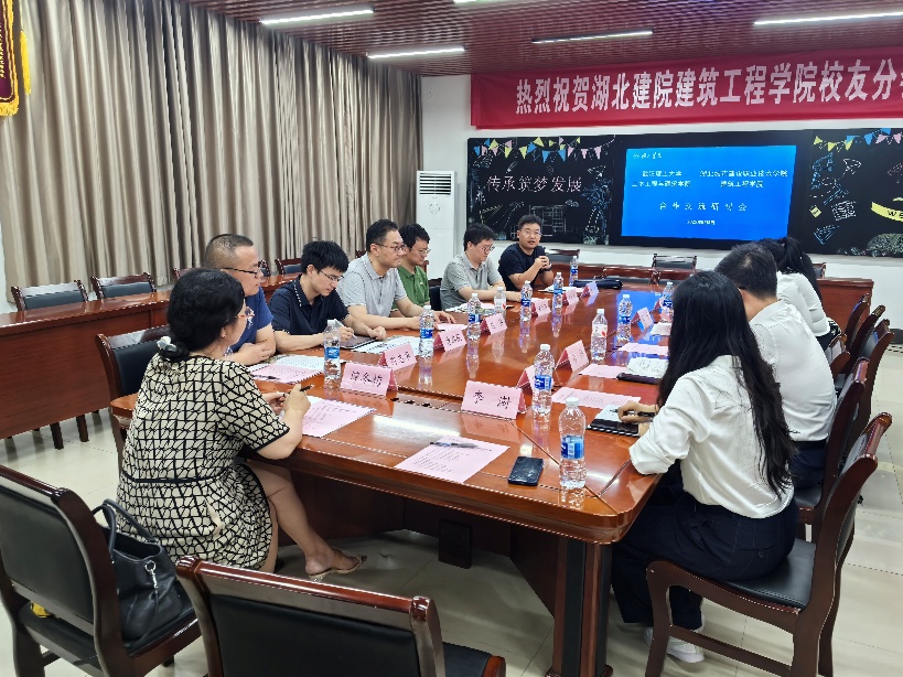 随后,双方在建筑工程学院会议室举行座谈交流。易操副校长出席会议并对来访代表表示热烈欢迎。双方围绕学生实习实训、科研与实践平台共享、科研联合攻关、党支部共建等方面进行了深入讨论,并就共同推动建筑类人才培养质量提升与技术创新交换了意见。会谈中,多位在湖北城市建设职业技术学院任职的中青年武汉理工大学土木系校友表示,母校教师的来访及对他们工作的肯定给予了极大鼓舞。他们为母校在土木工程教育与科研方面长期取得的成绩感到自豪,并期待今后在教学、科研与人才培养等领域与母校开展更深入的合作。