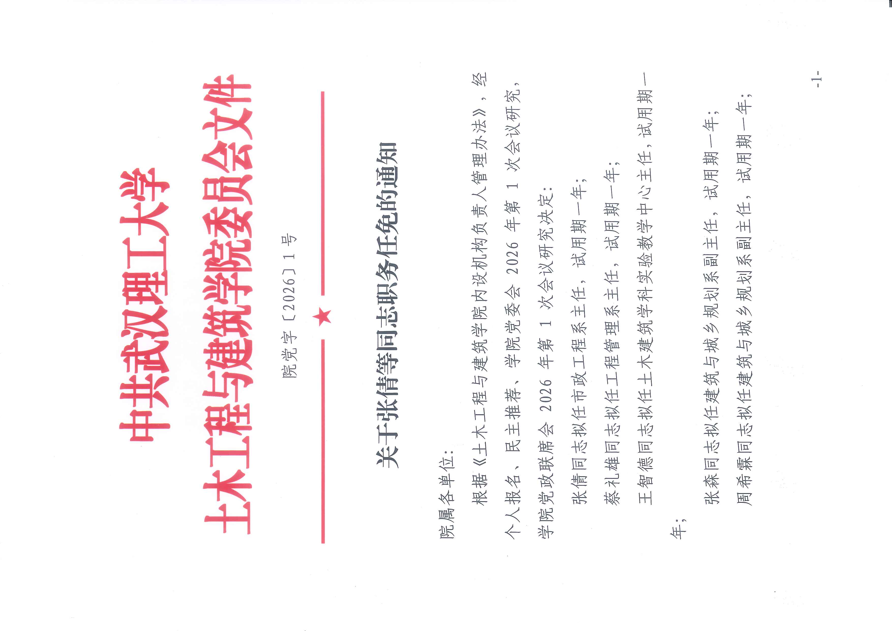 关于张倩等同志职务任免的通知【院党字〔2026〕1号】