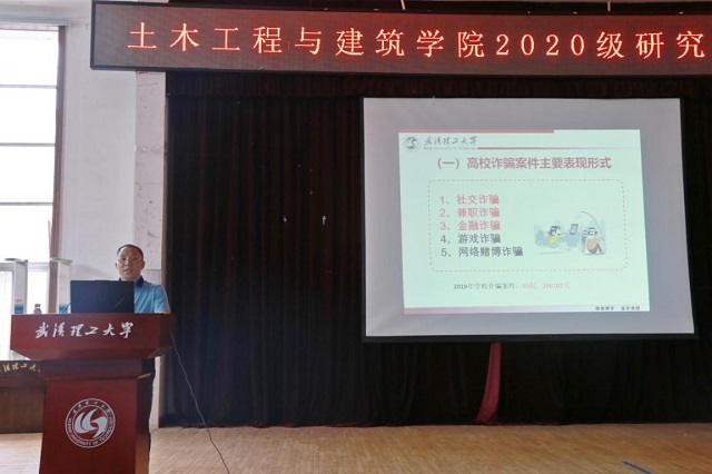 为切实增强研究生新生的安全防范意识和避险能力,提高自我防范能力,保障学生人身和财产安全, 9月14日下午,土建学院特邀请我校保卫处治安科科长易军在西院工会为土建学院全体研究生进行了一场安全教育活动。本次活动由土建学院研究生辅导员彭董明老师主持。