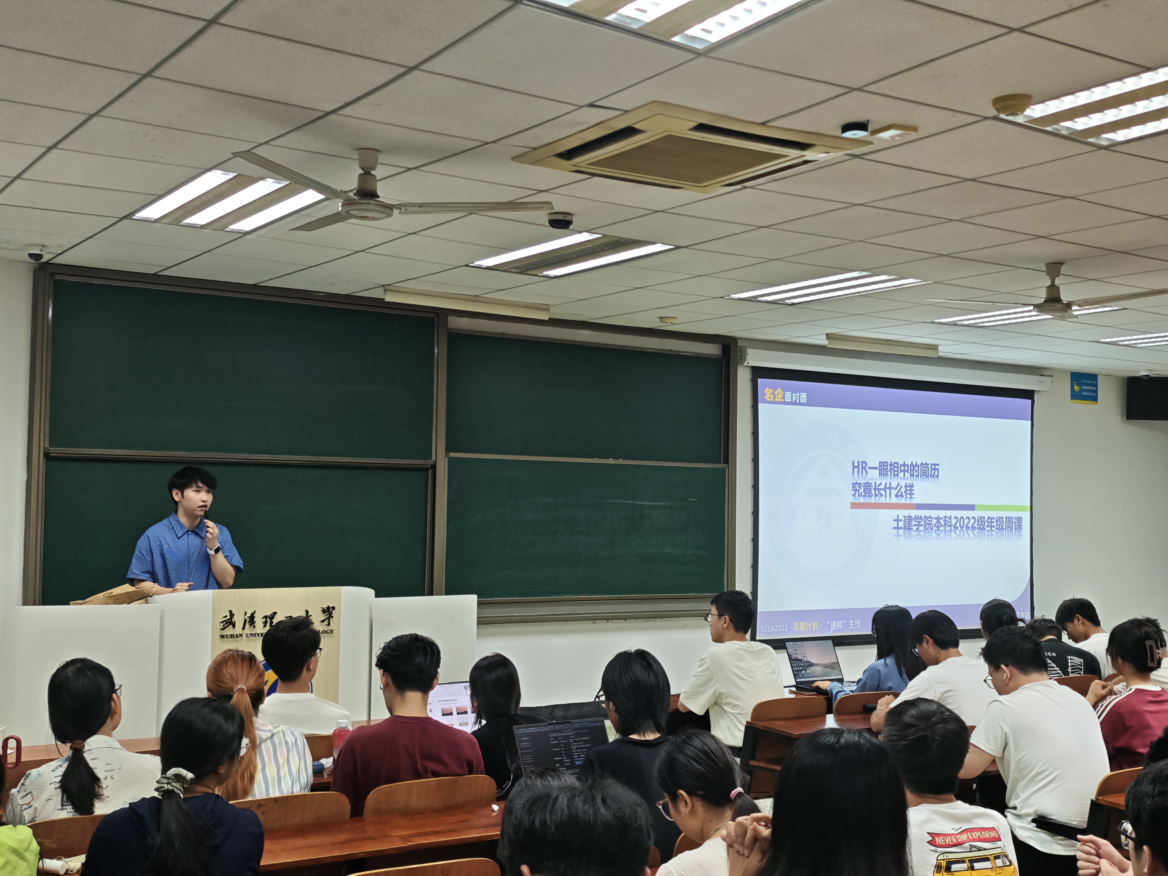 为助力同学们的就业能力提升,帮助同学们找到更加心仪的工作,9月14日下午,土建学院本科2022级携手“筑梦”辅导员工作室在新一307教室开展“名企面对面·简历诊断”年级周课,邀请到了来自深信服科技股份有限公司的武汉区域校园招聘负责人陈思颐和湖北区商业云计算售前工作负责人张志辰为同学们讲解简历优化技巧和跨专业简历完善的注意事项,本次会议由学院辅导员陈安荠老师主持,本科2022级全体同学参加。