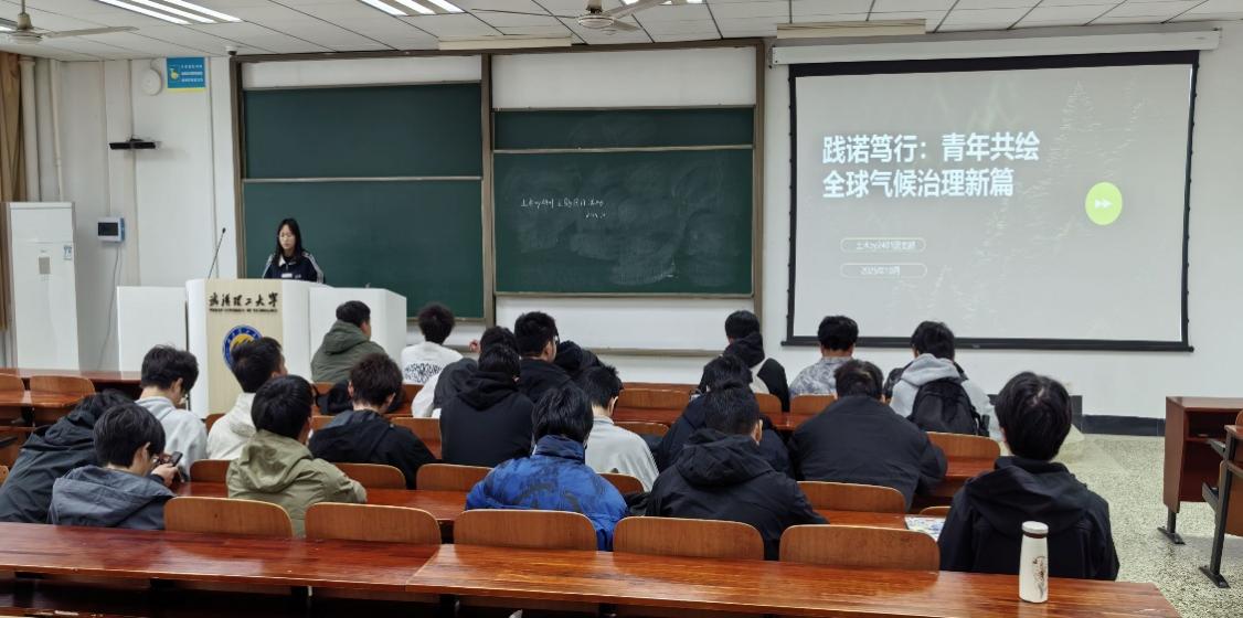 为深入学习习近平总书记关于全球气候治理的重要论述精神,引导青年学生理解“双碳”目标与生态文明理念,增强责任意识与行动自觉,2025年10月23日下午,土木zy2401团支部在博学主楼306教室举办了以“践诺笃行:青年共绘全球气候治理新篇”为主题的团日活动。本次活动由团支书陆灿主持,团支部全体同学参与。