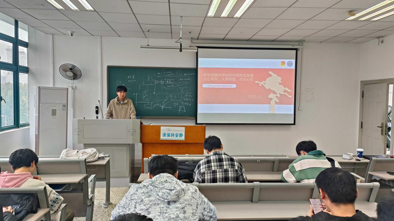 为深入学习贯彻习近平新时代中国特色社会主义思想,引导班级团员坚定理想信念,明确时代责任,10月20日,土木zy2204团支部于新三501教室开展以“凝聚青春力量,勇担时代使命”为主题的团日活动。会议由团支书吴铮涛主持,土木zy2204团支部全体团员参与。