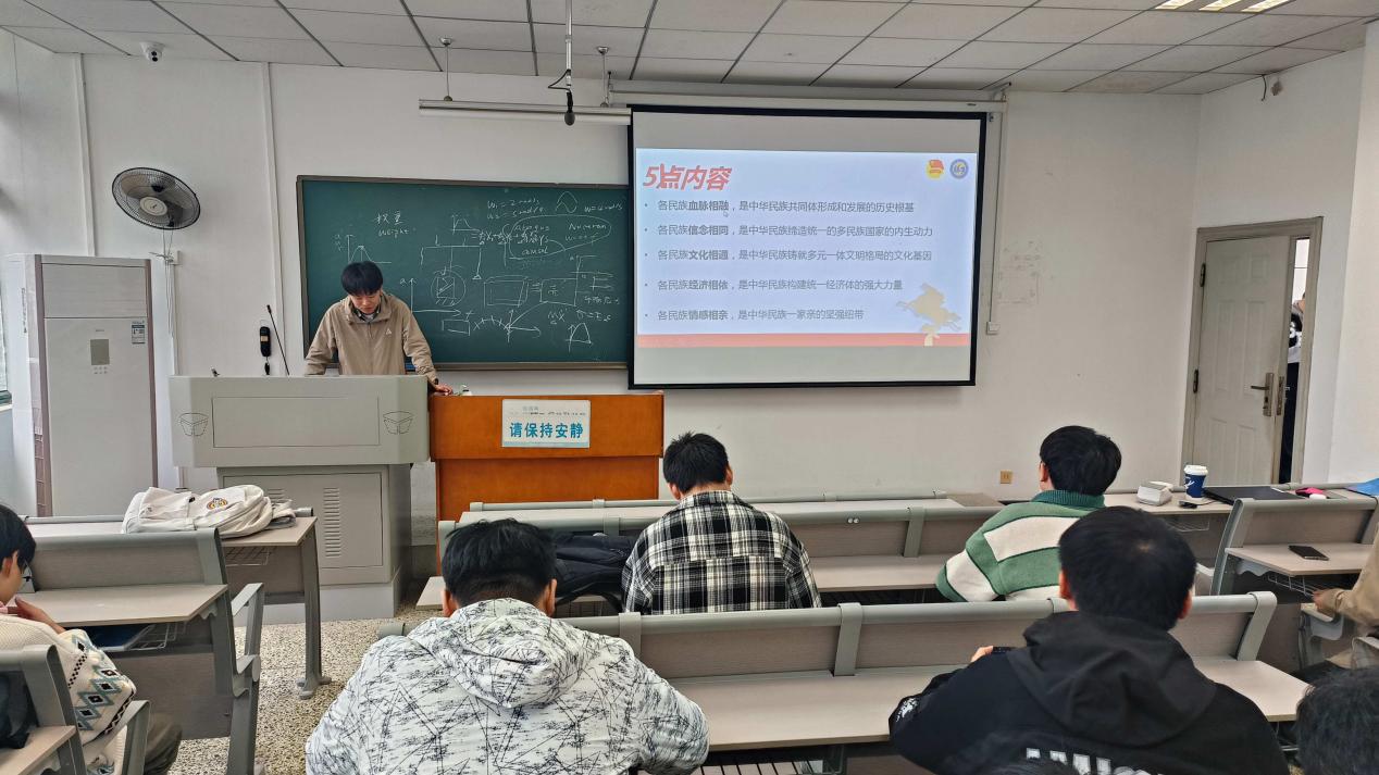 团课伊始,团支书吴铮涛以“青年与时代的双向奔赴”为切入点,结合党的二十大报告中对青年工作的重要论述,通过生动的案例和详实的数据,向在场团员们阐述了新时代青年肩负的历史使命。