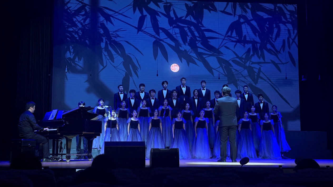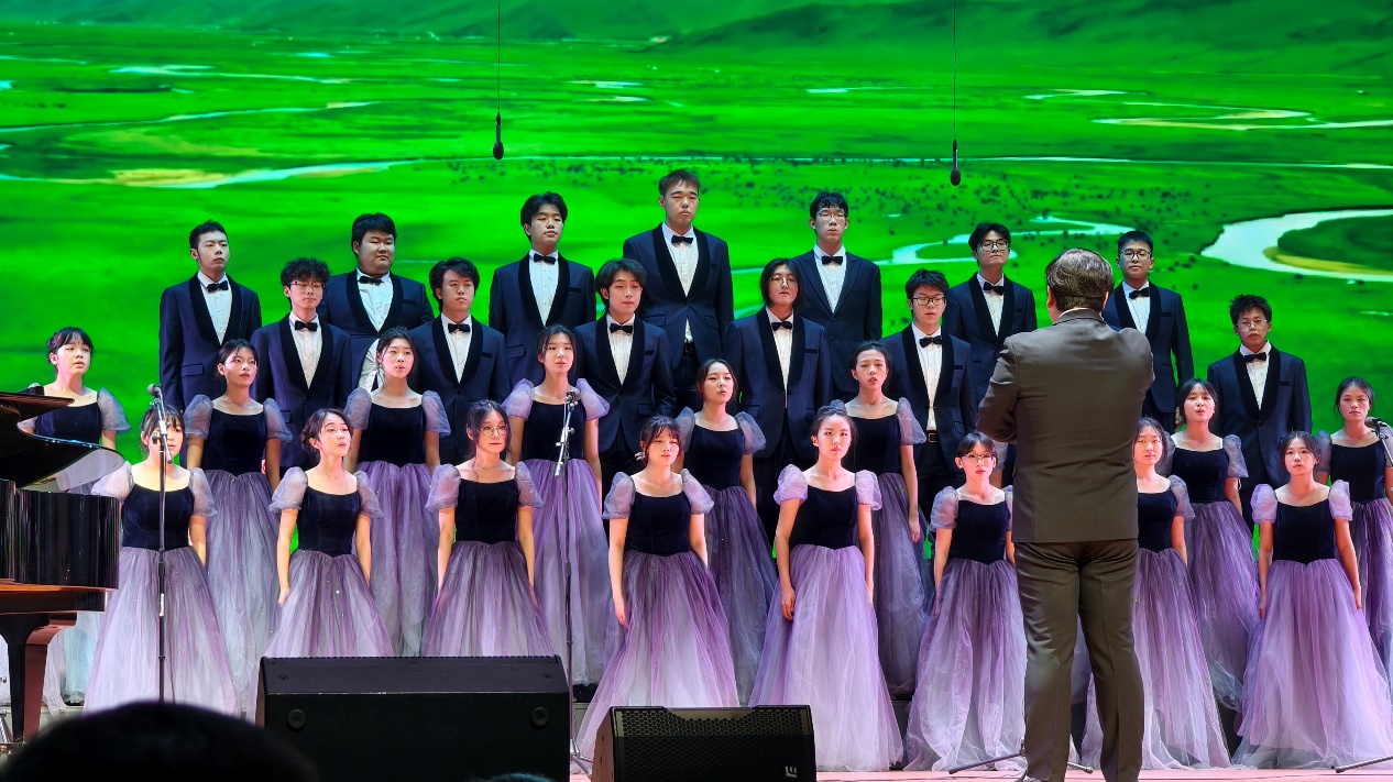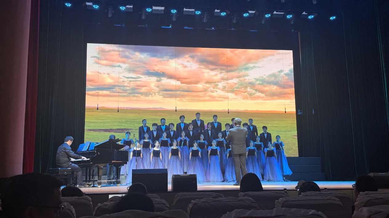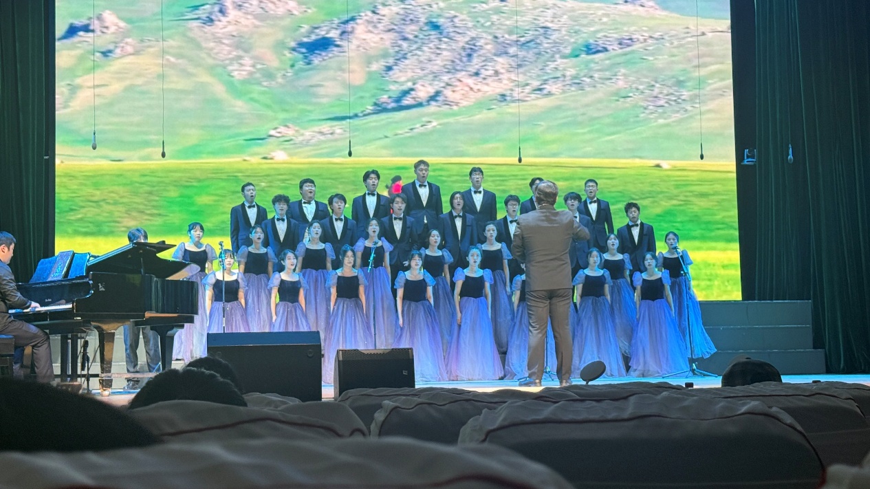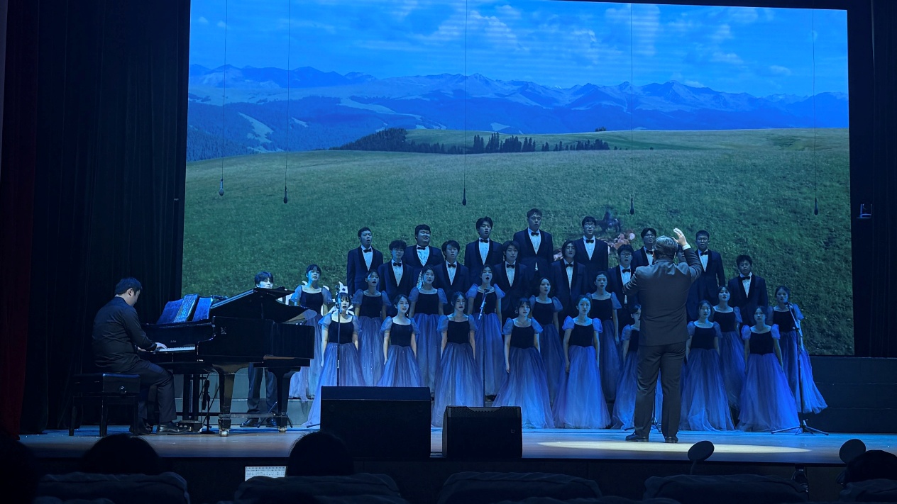 比赛现场,灯光聚焦的瞬间,合唱队成员身着统一服装,神情庄重而饱满。伴随着悠扬的伴奏响起,低沉的男声如草原基石般沉稳开篇,高亢的女声似流云般缓缓铺展,高低声部交织错落,将“天苍苍,野茫茫,风吹草低见牛羊”的壮阔画卷娓娓道来。歌声中既有古歌的雄浑苍劲,又融入了青年学子的朝气与赤诚,让在场观众仿佛置身于广袤无垠的敕勒草原,感受着自然与人文交融的磅礴力量。