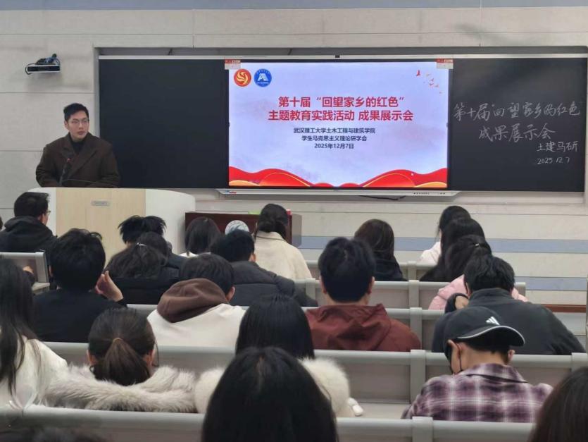 12月7日,土建学院学生马克思主义理论研学会在博学西楼104举办第十届“回望家乡的红色”主题教育实践活动成果展示会。学院马研指导老师周晨、马研学生负责人及70余名入党积极分子参加活动。