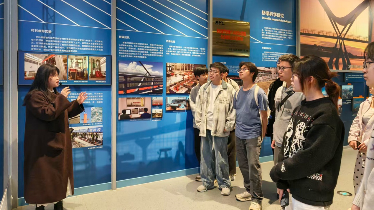 在博物馆讲解员的引导下,师生们先后参观了古代桥梁文明、近现代桥梁发展、桥梁科技革新等展区。从古代赵州桥的榫卯智慧到卢沟桥的历史底蕴,从武汉长江大桥的“万里长江第一桥”壮举到港珠澳大桥的世界之最,同学们通过实物展品、动态模型、沉浸式影像等多种形式,全方位了解中国桥梁的发展脉络与辉煌成就,深刻体会“逢山开路、遇水架桥”的建桥精神。