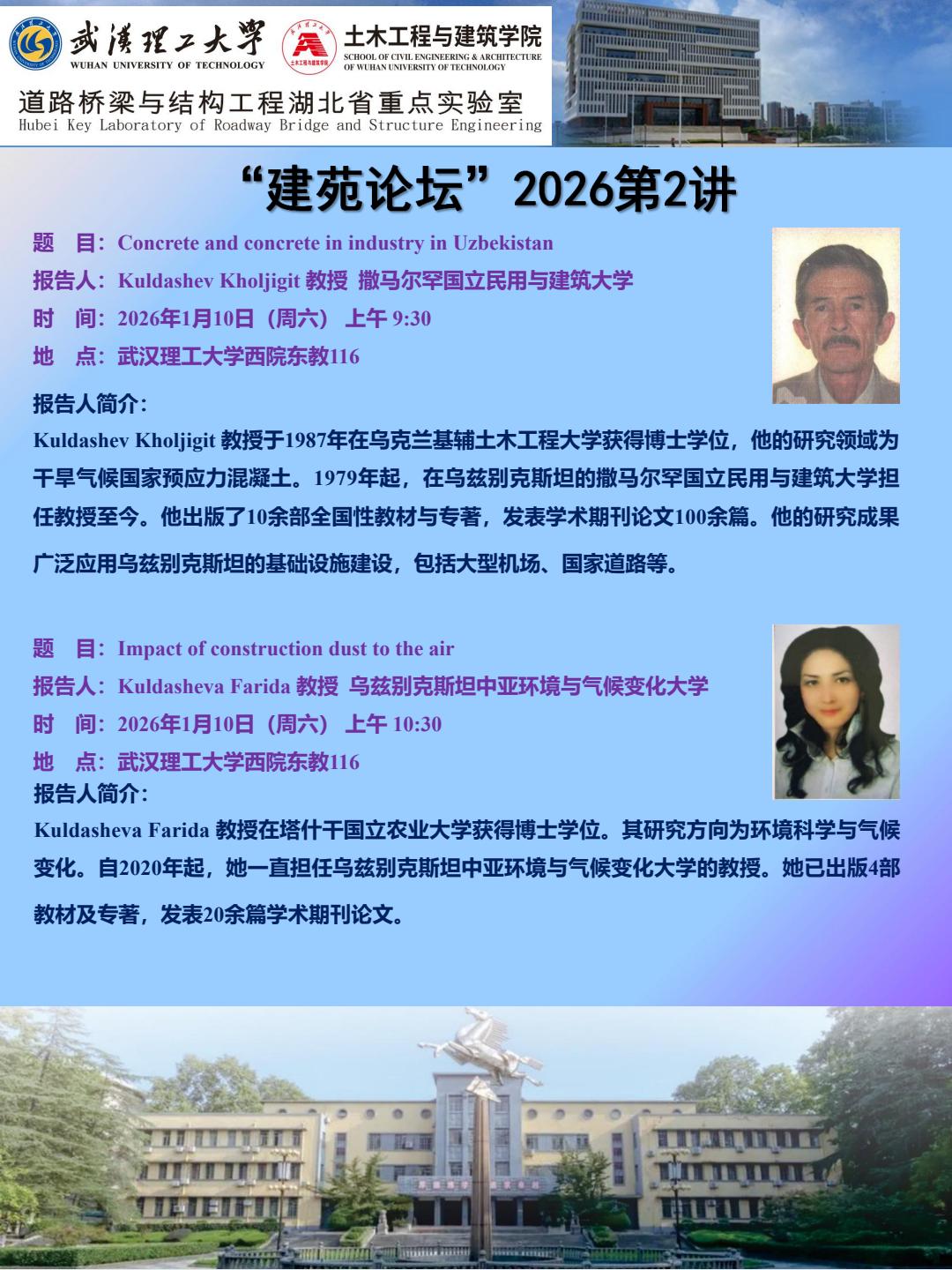 “建苑论坛”2026 第2讲 主题:Concrete and concrete in industry in Uzbekistan;Impact of construction dust to the air