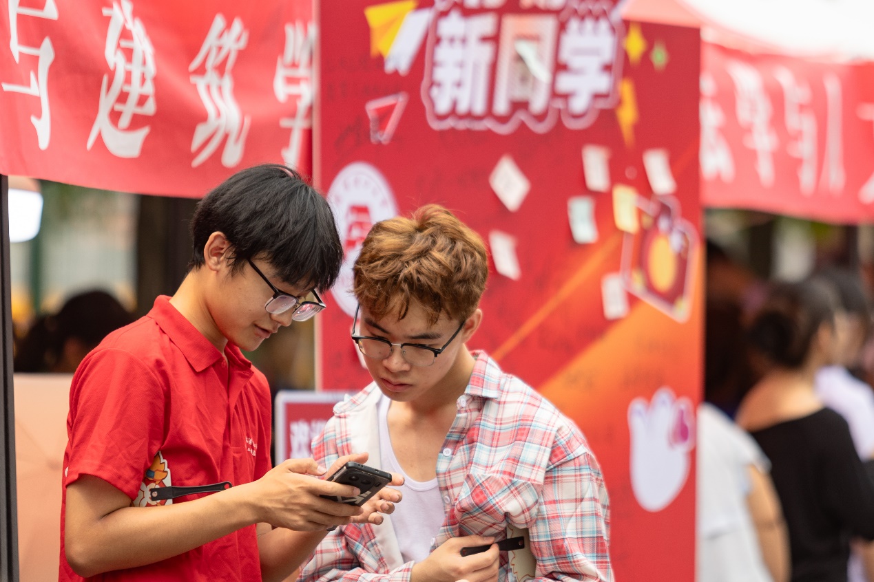 迎新现场设置了融合专业特色的古建筑模型展示区、主题展板及签名墙。新生在观摩建筑模型、了解学科历史与工程技艺的同时,也踊跃参与展板前的合影打卡活动,留下进入大学后的第一组纪念照片。许多同学在签名墙上写下寄语,以笔墨寄托青春理想,成为迎新日中一道富有意义的风景。