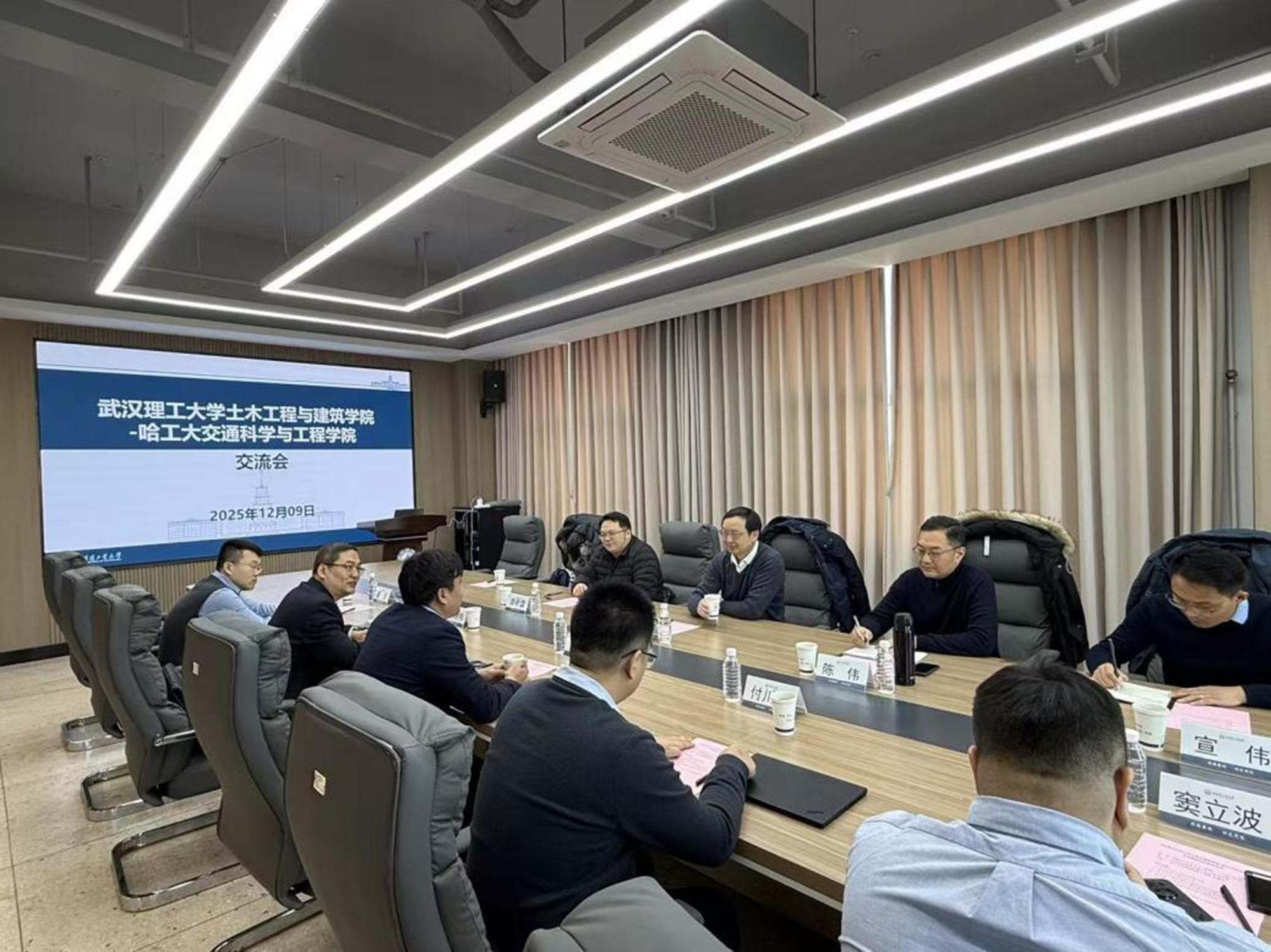12月9日上午,调研团队赶赴哈尔滨工业大学。哈尔滨工业大学交通科学与工程学院院长董泽蛟、院长助理胡晓伟等热情接待了吴斌院长一行。在董泽蛟和胡晓伟的陪同下,学院一行首先参观了哈工大交通科普馆与未来交通国际创新平台,实地考察了其在智能交通、未来立体交通网络等领域的先进研究成果与实验设施。随后,双方举行交流研讨会。董泽蛟系统介绍了哈工大交通学院的整体发展情况,并着重分享了其在“低空技术与工程”专业申报过程中的最新进展、建设思路以及面临的挑战与对策。吴斌随后介绍了武汉理工大学土建学院的发展历程、学科特色,并详细阐述了学院筹划建设低空技术与工程学科的初步构想、现有基础、发展规划以及期待突破的方向。双方就如何发挥土木、交通、建筑等学科优势,赋能低空基础设施规划、智能建造、运维管理等领域进行了热烈讨论,并在加强后续交流与合作方面达成共识。
