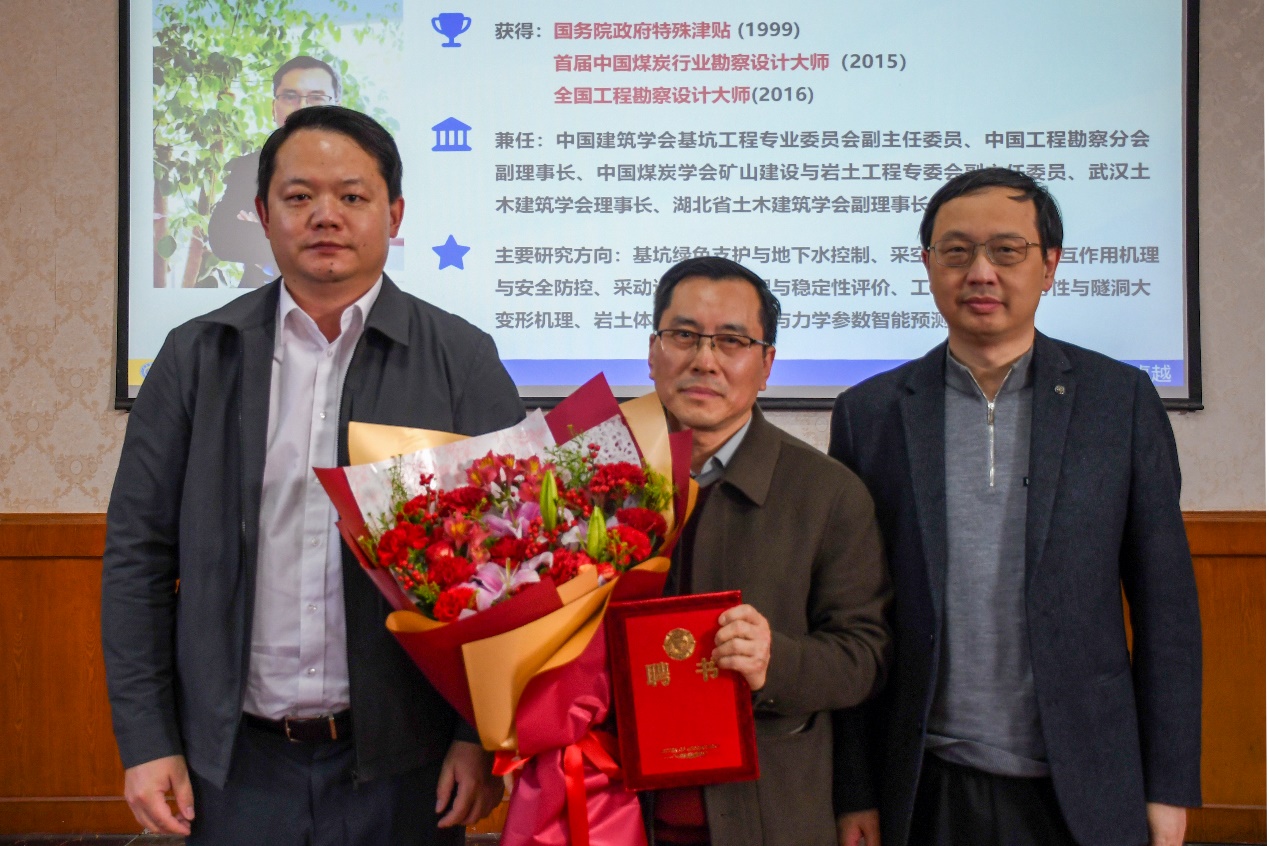 会议伊始,学院为徐杨青教授举行了简朴而庄重的聘任仪式。徐杨青教授是一位享誉业界的资深专家,荣获国务院政府特殊津贴,并先后获评“首届中国煤炭行业勘察设计大师”及“全国工程勘察设计大师”。对于徐杨青教授的加入,全场报以热烈掌声,大家对他的到来表示诚挚欢迎。