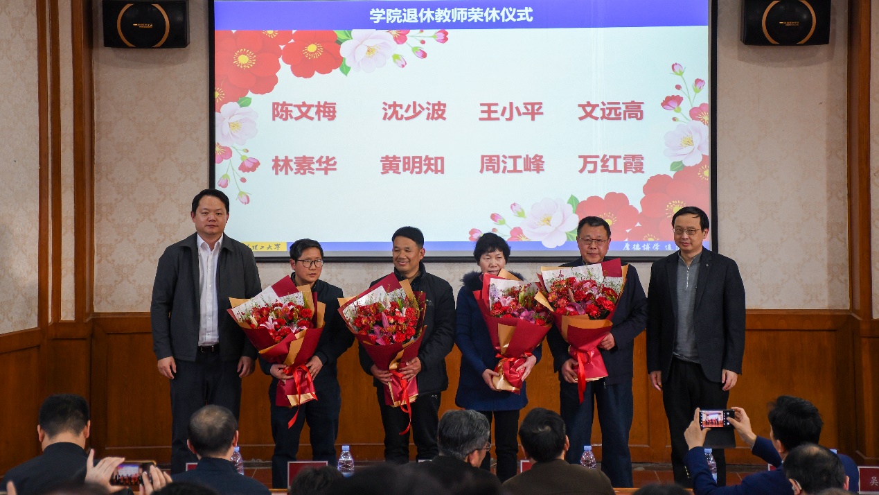 随后,学院对侯传坦、王宇、朱鹏霖、邓富颢、花雨萌、孙一方等六位新入职教师表示了热烈欢迎。与此同时,学院也怀着深深的感谢之情,向光荣退休的陈文梅、沈少波、王小平、文远高等四位老教师致以崇高敬意与真挚祝福,感谢他们为学院发展倾注的心血与智慧。